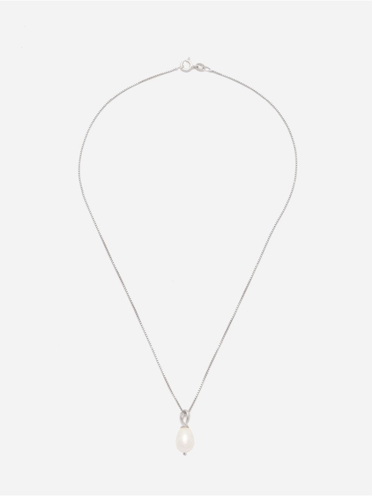 El collar Julie es una elegante pieza de joyería. Esta cadena de eslabones tiene un único colgante con una perla de Swarovski en forma de gota y es fina de llevar y fácil de combinar. El collar Julie está disponible con baño de rodio.
