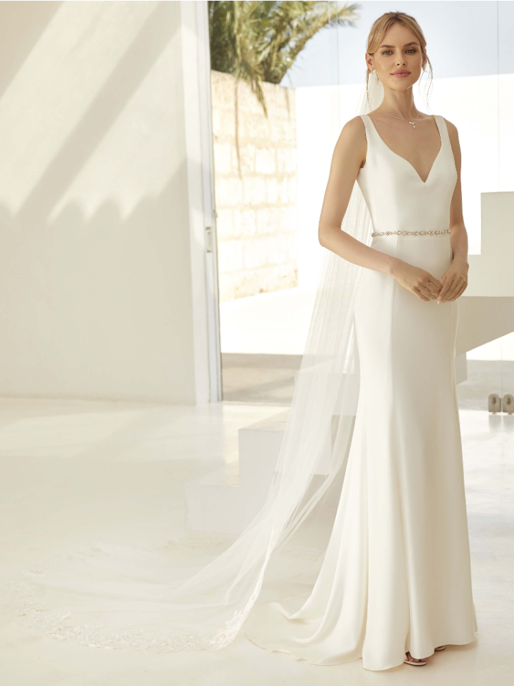 Este elegante velo de Bianco Evento completará tu look de novia. Este velo de una capa está hecho de tul daimond con borde de encaje en la parte inferior y borde cortado en la parte superior. Lleva una peineta que facilita la colocación del velo en el pelo.