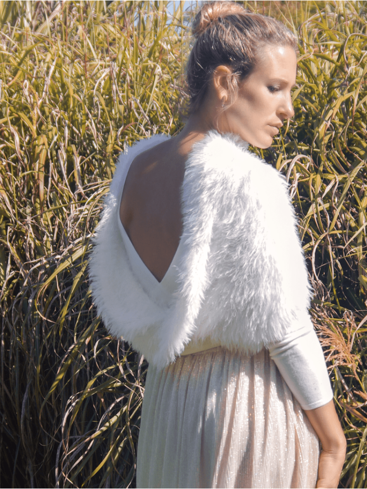 Este precioso pañuelo esponjoso con un suave lazo con rotación es perfecto para el día de su boda. Es de calidad muy elástica y suave. La bufanda acaricia tus brazos y te mantiene bien abrigada. Esta prenda de punto para novias es preciosa para una boda de invierno u otoño. El lazo con rotación tiene una circunferencia de 110 cm. Puede llevar esta bonita bufanda con el lazo por delante y por detrás.