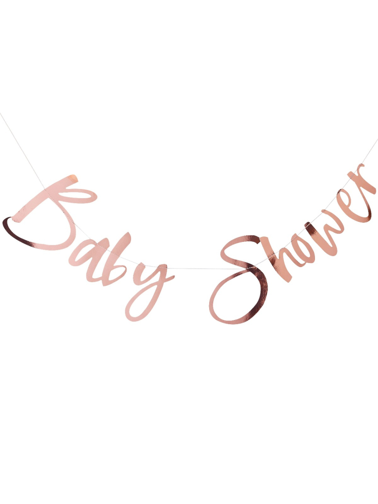 Esta guirnalda en color rosa dorado es imprescindible para su fiesta de bebé.
