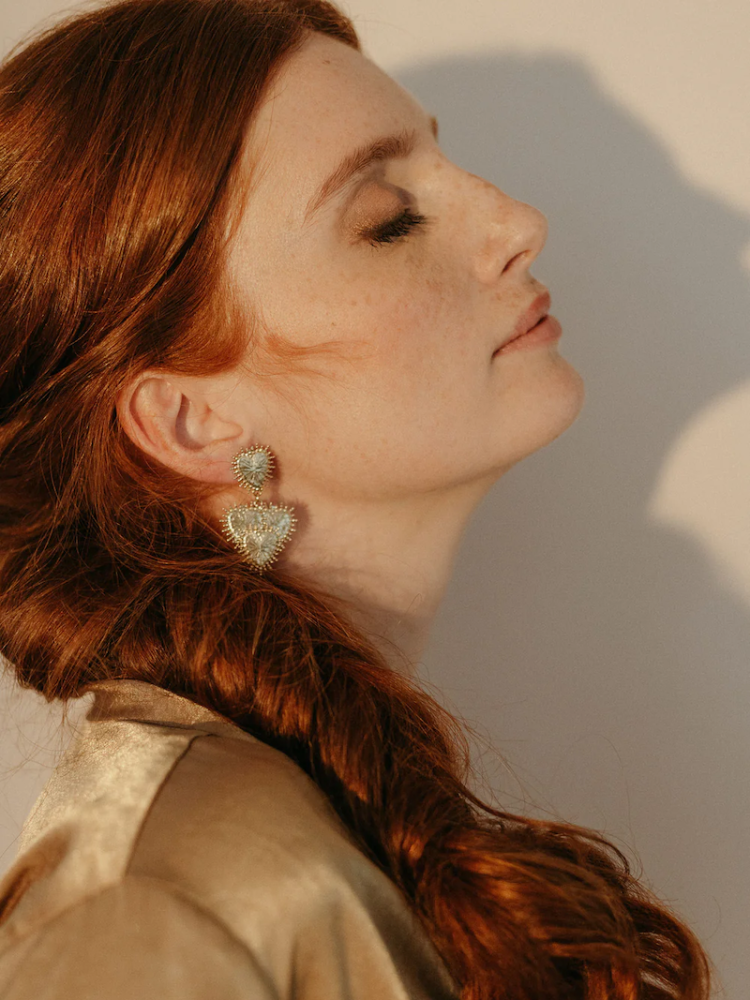 Los pendientes Valentine de Lizeron son elegantes accesorios en forma de corazón, inspirados en ex-votos. Baños de oro con delicados detalles de cuentas, cuentan con postes de plata para mayor comodidad. Hechos a mano con esmero, añaden un toque de gracia a cualquier atuendo. Manténgalos secos y guardados de manera segura para preservar su belleza.
