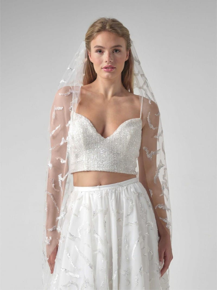 Adornos: Lentejuelas plateadas Formas onduladas en todo el velo